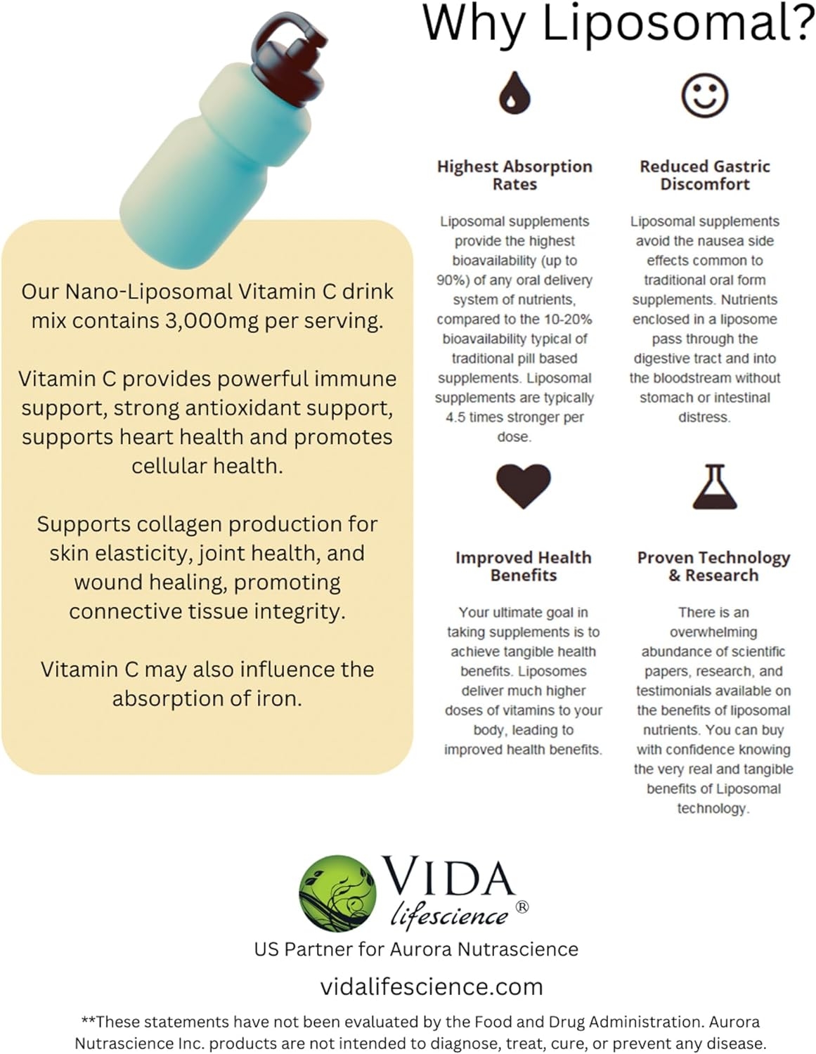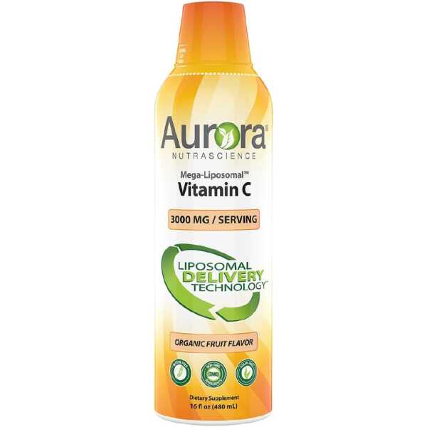 Aurora Nutrascience, Mega-Liposomal Vitamin C, 3,000 mg per Serving, Gluten Free, Non-GMO, Sugar-Free, High Absorption, Fat Soluble Vitamin C, Immune System Support, 16 oz (480 mL)