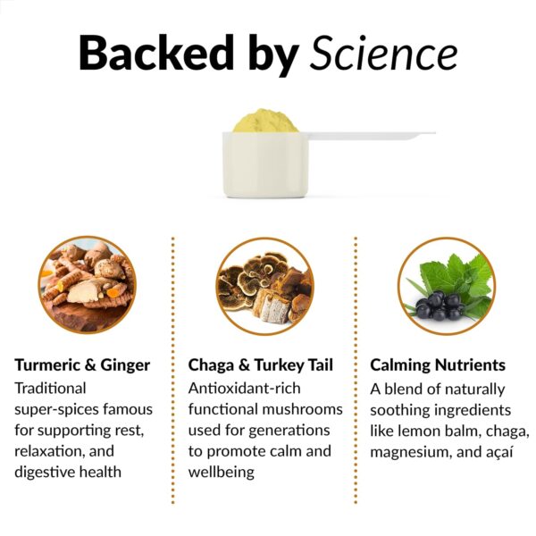 - CONTAINS FUNCTIONAL MUSHROOMS: Every scoop contains turkey tail mushroom and chaga mushroom powder, two of nature’s most powerful mushrooms to support rest, recovery, and a total wellness reset.