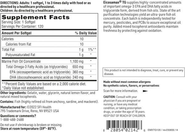 Each batch of Eicosamax is responsibly and sustainably harvested and independently tested for mercury, pesticides, and PCBs to assure exceptional oil purity. Anaerobic bottling, natural lemon flavoring, as well as added mixed tocopherol antioxidants protect against oxidation, maintain product freshness, and ensure a fresh, non-fishy taste.