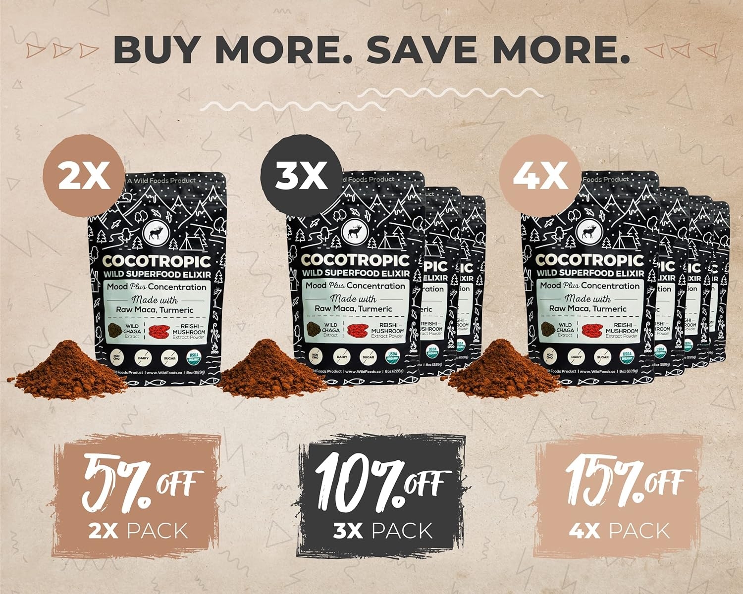- Delicious Taste: CocoTropic mushroom hot cacao mix with reishi has a delicious natural cocoa flavor and is ideal for mornings and adds a delightful boost to baking. Simply mix one scoop of mushroom hot chocolate for a tasty boost.