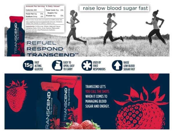 If you are reading this review you probably are suffering with some level of Diabetes and therefore know the extreme importance of restoring blood sugar levels when dealing with a low glucose situation. Timing can be critical. I am a type 2 diabetic and have been for almost 25 years. Take it from me that this product boosts your blood sugar level quickly and is extremely easy to use. The package is easy to carry and easy to open when you need it. It is pleasant tasting as well. There is no down side to this Transcend product. I have found that one packet will raise my glucose levels 25 points in just minutes so I have them stashed in my office, my home, my car, my workshop, my attache case and even more places. Don’t be without this product, it could save your life!!